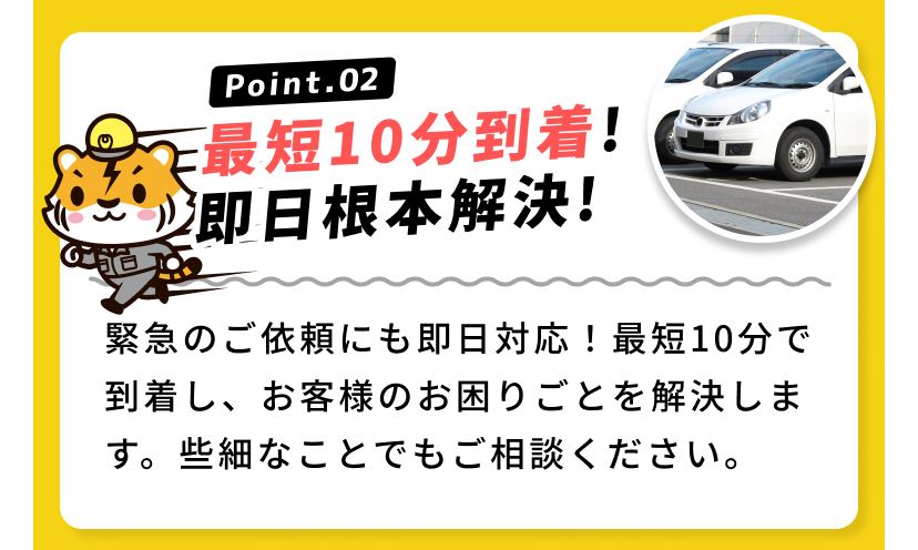 はい、可能です。屋外での作業については、暗く見えにくい、大きな音が出る工事などの場合は、翌日になってしまうこともございます。まずは、お気軽にご相談ください。