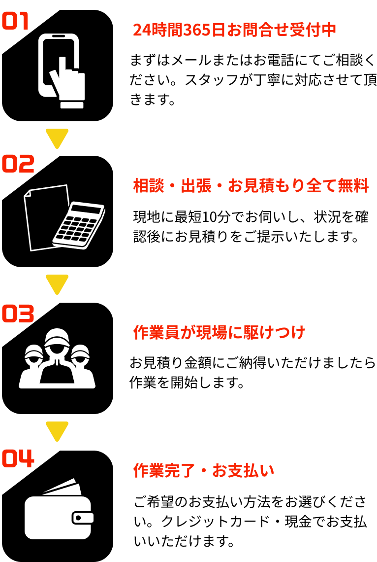 はい、無料です。出張費は一切頂いておりません。また、現地調査も無料です。 土日祝に休日料金が発生するなどもございませんので、安心してお問い合わせください。